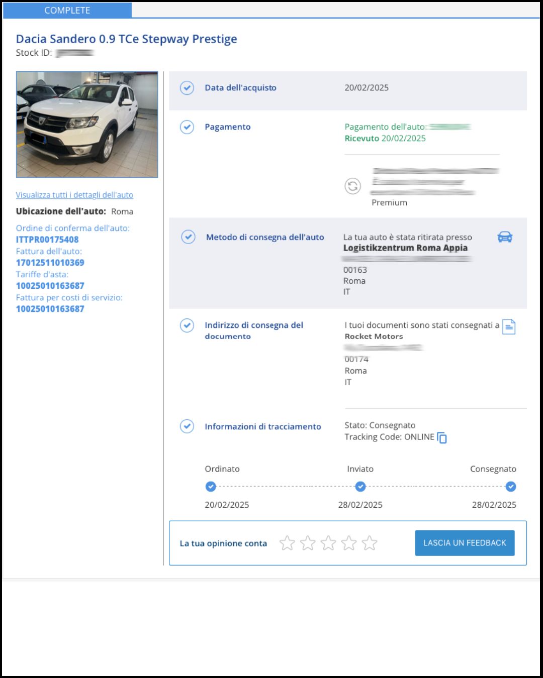 Ogni auto ordinata gode della stessa garanzia di 12 mesi delle nostre auto in pronta consegna, con possibilità di estensione per la tua tranquillità.